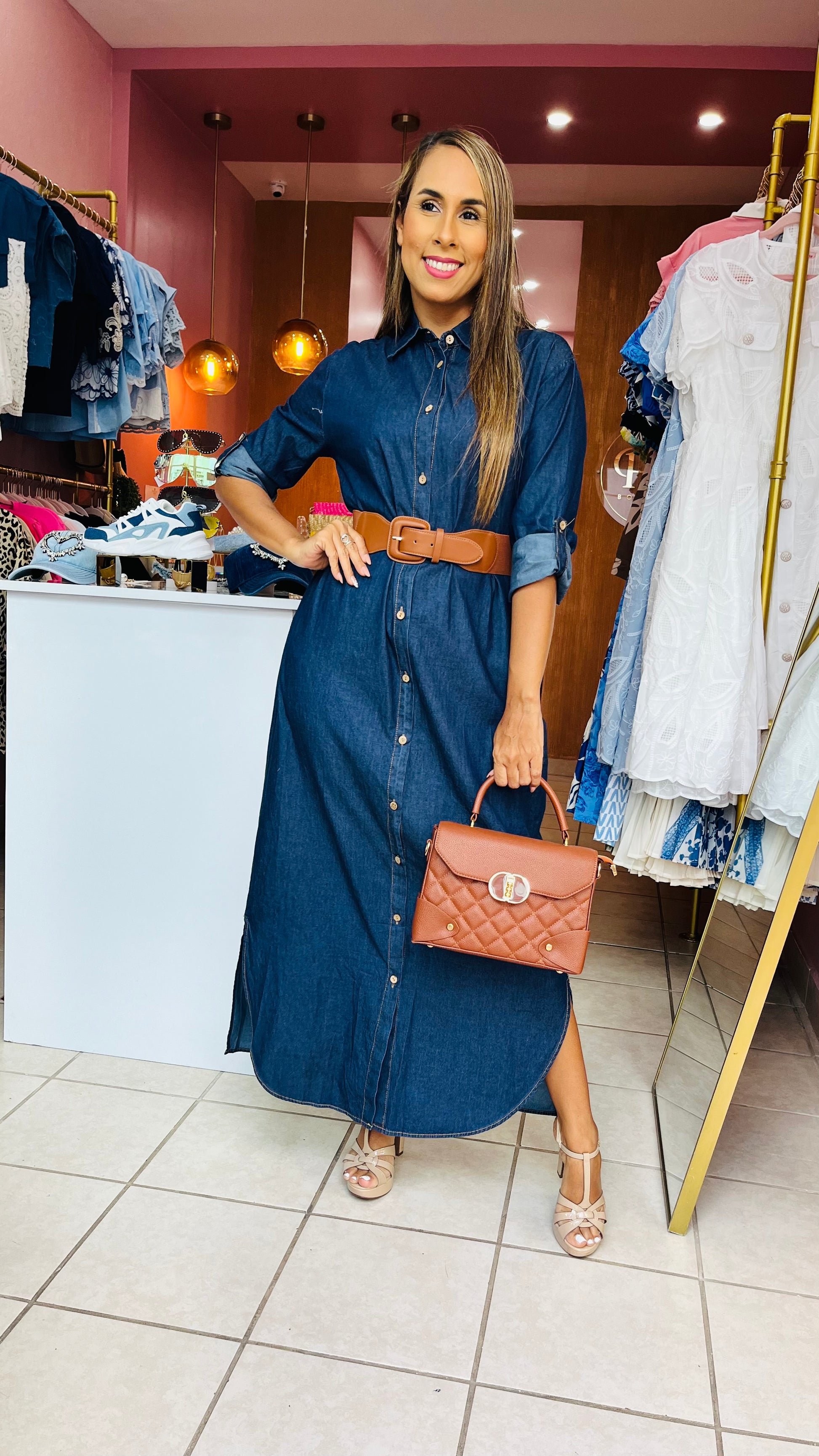 Hermoso vestido mahón. Corre al size. Modelo utiliza Small.